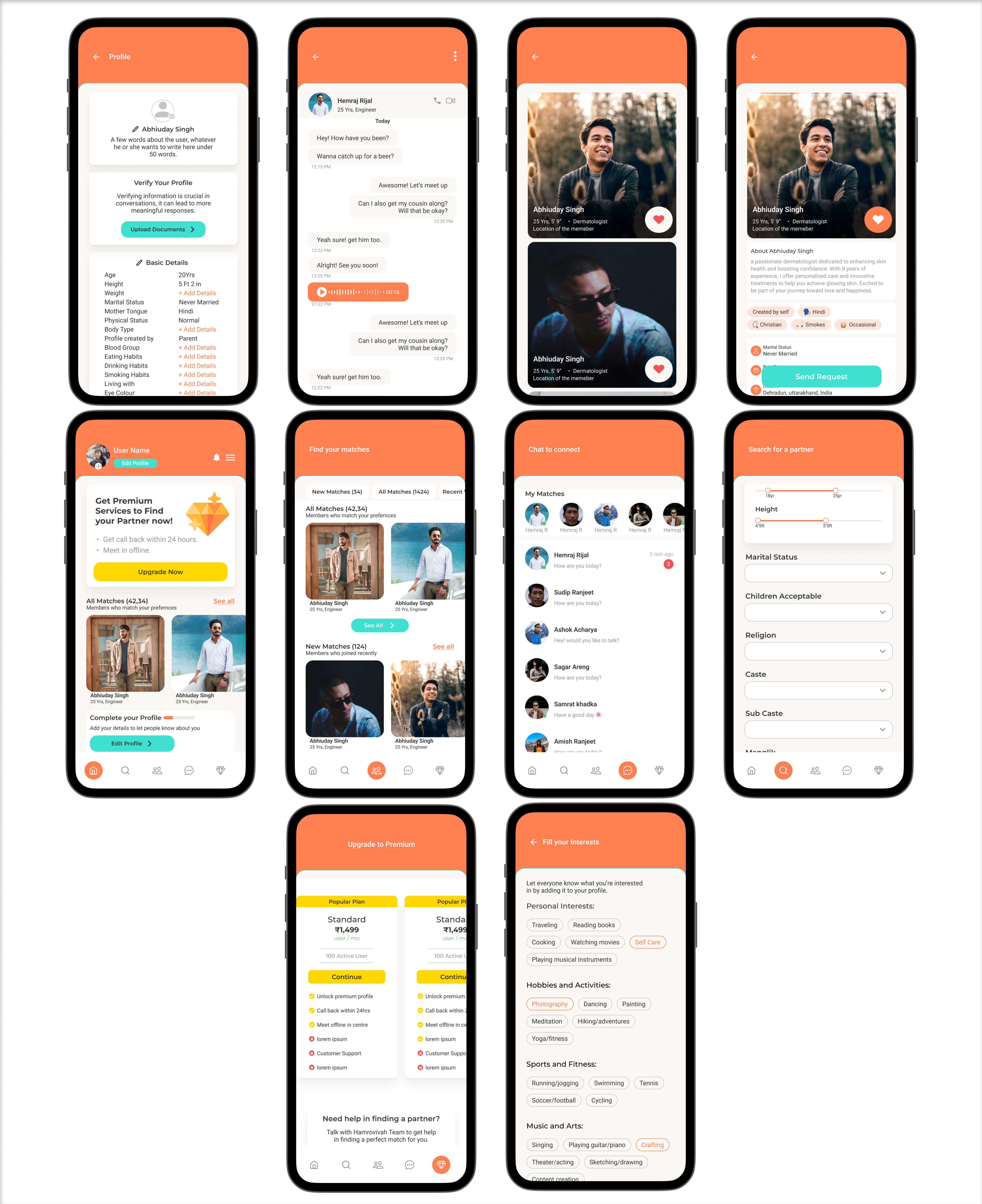 To understand the space better, I reviewed existing matrimony platforms and noted how they handled onboarding, profiles, and conversations. While these apps worked well from a functional standpoint, they often felt transactional and lacked cultural sensitivity.